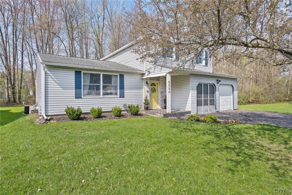 When the home your selling has the most photogenic pup you've ever seen who refused to get out of our photos, you make do with what you have! Unfortunately Thor, the adorable Corgi, does not convey with the sale of the house though :( Welcome to 5550 Taormina! Backing up to town of Clay land, this spectacular split level offers privacy yet the convenience of everything Clay and Cicero offer by way of shopping and entertainment! Step inside to find Thor sunbathing in the natural light that flows through the large bay window of the front living room. Heart of the home is the expansive kitchen that features extra cabinetry/counter space and a breakfast bar. Step down into the family where Thor loves the warmth of the gas fireplace and gazing into the backyard greenery through the sliding glass door. Upstairs offers 3 generous sized bedrooms, including an large primary with double closets, plus a remodeled full bathroom featuring wood look ceramic flooring! Don't wait, book your showing today!