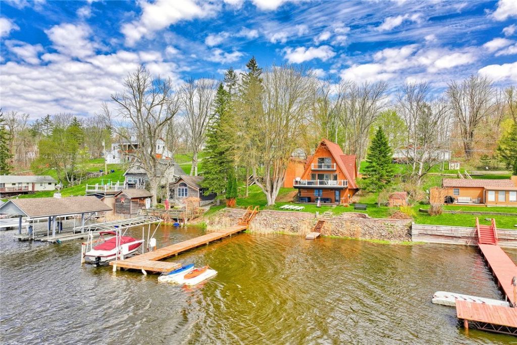 Enjoy the very best of lakefront living with this beautiful fully furnished Port Bay property! Outside, you'll find 103 feet of stunning waterfront, three gorgeous Trex decks, attractive landscaping, a huge fire pit, two sheds, and an 80-foot permanent dock with a boat hoist and PWC dock! There's also a detached 1.5-car garage with loads of storage and plenty of off-street parking for guests. Inside, the modern layout features beautiful cabinetry, laminate floors, Corian countertops, sliding glass door to deck and stunning bay views from both floors! With four bedrooms and 2.5 baths (LL 1/2 bath is plumbed for full bath), including a first-floor bedroom, bath, and laundry, plus a partially finished walk-out lower level with extra living space and a large bedroom that sleeps six! This rare slice of paradise has room for everyone! The home has been well maintained with updates like a tear-off roof in 2014, a high efficiency furnace and central air in 2017, a Wi-Fi thermostat, on-demand hot water heater, stainless-steel refrigerator, lighting and furnishings. All this in a peaceful bayfront spot with easy access to Lake Ontario. Delayed negotiations begin Tuesday, 4/28/2026 at 12:00PM.